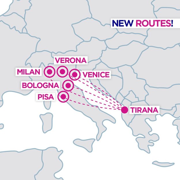 Both business and leisure passengers from Milan Bergamo, Bologna, Verona, Venice Treviso and Pisa will benefit of frequent connections to reach the Albanian capital and enjoy its history and architecture, as well as good food and citizens great hospitality. The new connections to Tirana are commencing on 29 March.